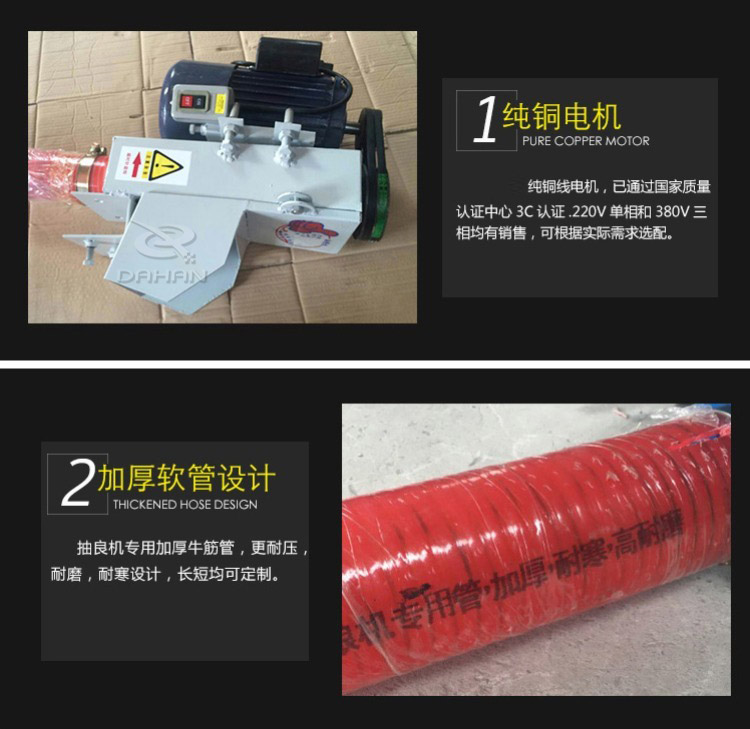 糧食的收購入車的操作,該絞龍具有省時(shí)、省力、省人工的功效。而且重量輕,有兩個(gè)人操作可以了,加進(jìn)了糧食收購過程,大大節(jié)省了時(shí)間,受到了廣大糧食收購者的歡迎!糧食用吸糧機(jī)機(jī):便捷式抽糧器,本機(jī)器具有體積小、功率大、攜帶方便等特點(diǎn),全國少見生產(chǎn)新型產(chǎn)品。機(jī)器使用電源220V(兩相電可操作),機(jī)身長度8米,每小時(shí)抽糧10-12噸,機(jī)器重量75公斤,適合下鄉(xiāng)抽糧使用,能使您減輕人工負(fù)擔(dān)。省工省時(shí)省力,下鄉(xiāng)抽糧神器。使用220V電壓和380V電壓兩種,簡單實(shí)用,設(shè)計(jì)合理,體積小,每小時(shí)提升6噸糧食,直接卡在貨車箱的加高壁上就可以了,可彎曲可移動(dòng),可分體,攜帶方便,是各種糧食作物裝車、卸車、出庫、入庫等的好設(shè)備,即省工又省力