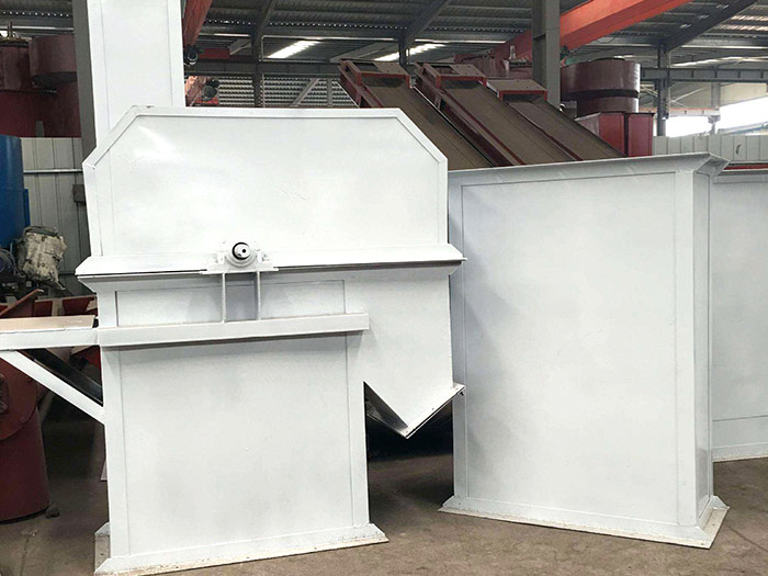 斗式提升機由殼體、牽引件(輸送鏈)、料斗、驅動輪(頭輪)、改向輪(尾輪)、張緊裝置、導向裝置、加料口(入料口)和卸料口(出料口)。